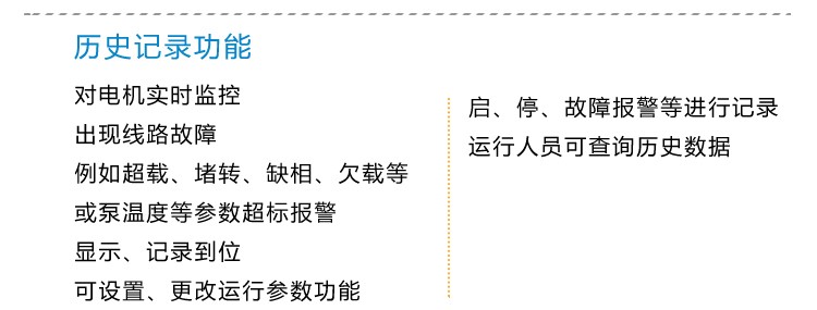 泵站管理人員可以在泵站監(jiān)控中心遠程監(jiān)測站內(nèi)液體液位或進站壓力、泵組工作狀態(tài)、出站流量、出站壓力等;支持泵啟動設備手動控制、自動控制、遠程控制泵組的啟停;通過與視頻監(jiān)控系統(tǒng)相連,還可圖像監(jiān)視站內(nèi)全景或重要工位,實現(xiàn)泵站無人值守。