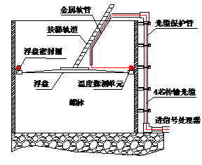 一般情況下,對(duì)灌區(qū)油罐實(shí)行集中監(jiān)控方式,每個(gè)油罐無論容積大小,均實(shí)行單獨(dú)監(jiān)測(cè)通道實(shí)時(shí)在線溫度檢測(cè)方式,避免同一監(jiān)測(cè)通道監(jiān)測(cè)多個(gè)油罐而造成的許多維護(hù)管理方面的不便,光纖光柵溫度探測(cè)器在油罐上的間隔可以按照3-6米布置,也可以做成雙環(huán)布設(shè),采用專用夾具將光纖光柵溫度探測(cè)器布設(shè)在浮盤/浮船擋油槽的密封圈附近,然后通過光纖/光纜把探測(cè)器串連起來,接入到控制室的信號(hào)處理器,通過信號(hào)處理器對(duì)采集到的信號(hào)進(jìn)行解調(diào),測(cè)量出現(xiàn)場(chǎng)溫度的實(shí)際情況,并將相關(guān)的信息傳遞到中央控制室。