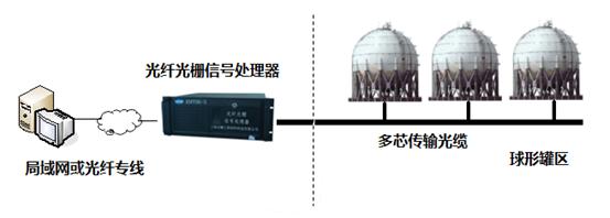 儲(chǔ)氣罐光纖光柵火災(zāi)報(bào)警系統(tǒng)示意圖